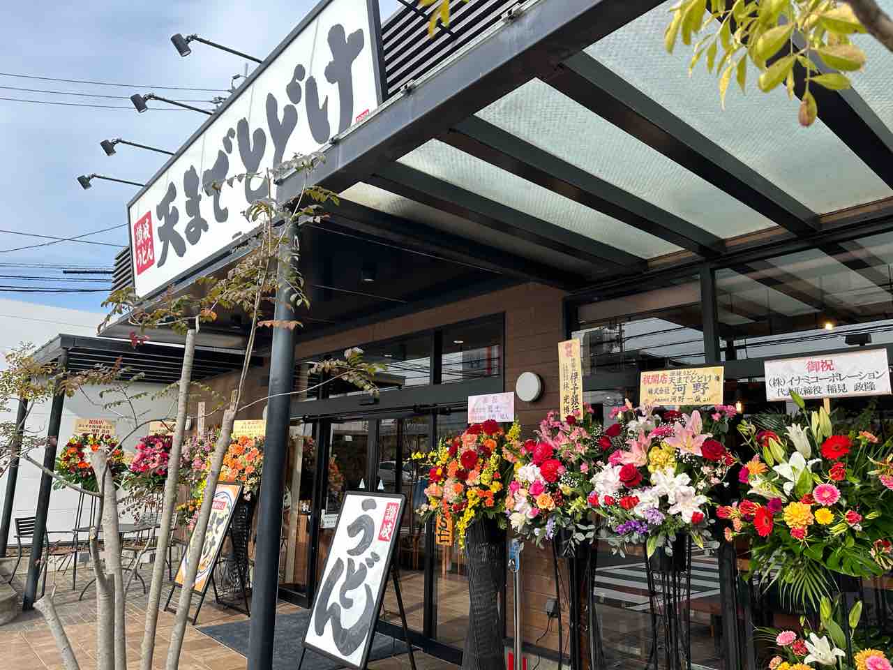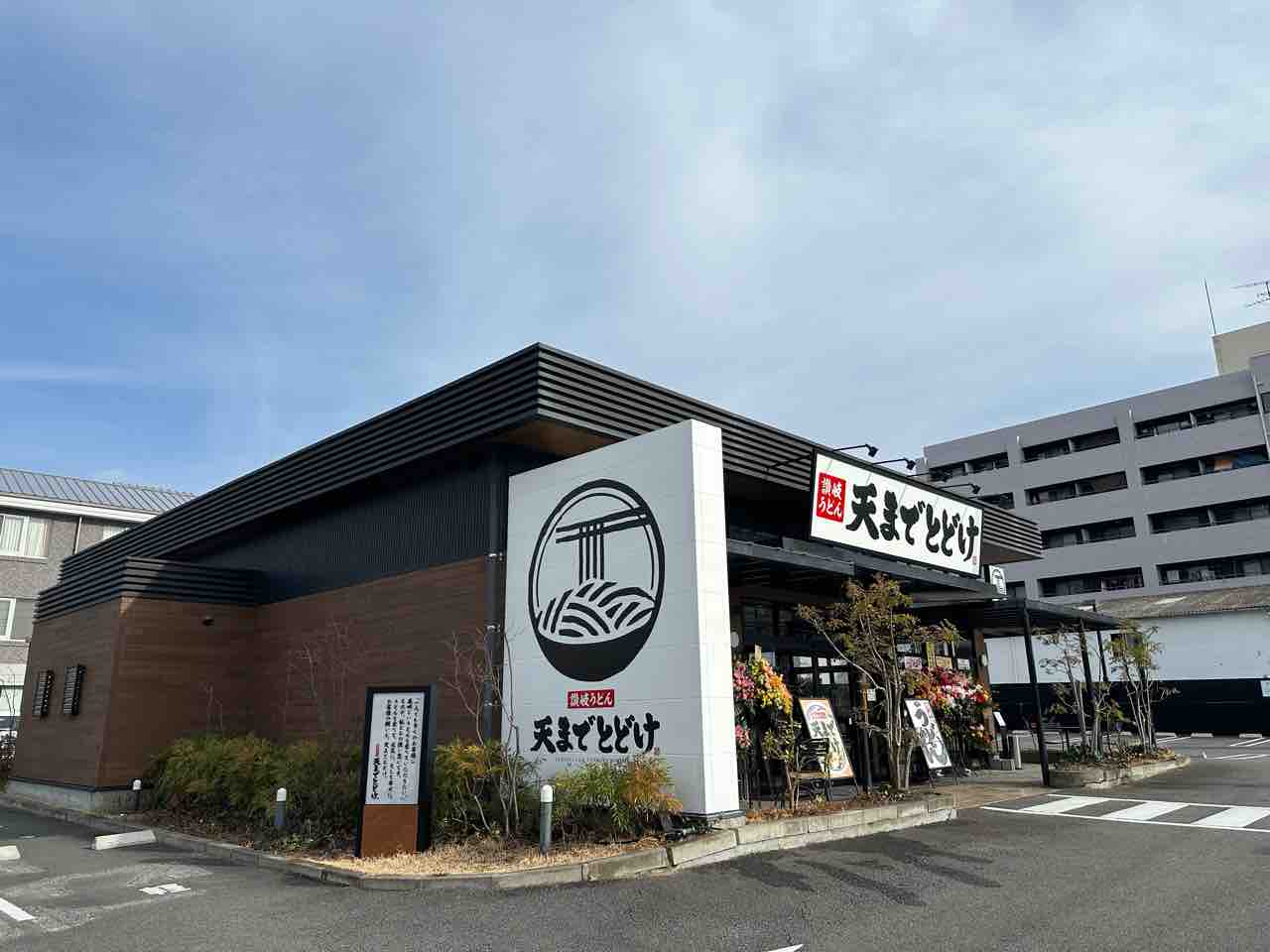 2026年1月15日(木)、松山市朝生田町3丁目に新しいうどん店が誕生しました。その名も「讃岐うどん 天までとどけ」。場所は、以前「アマンダコーヒーズ 朝生田テラス店」があった跡地。地域の人に親しまれてきた場所に、新たな食の物語が加わりました。