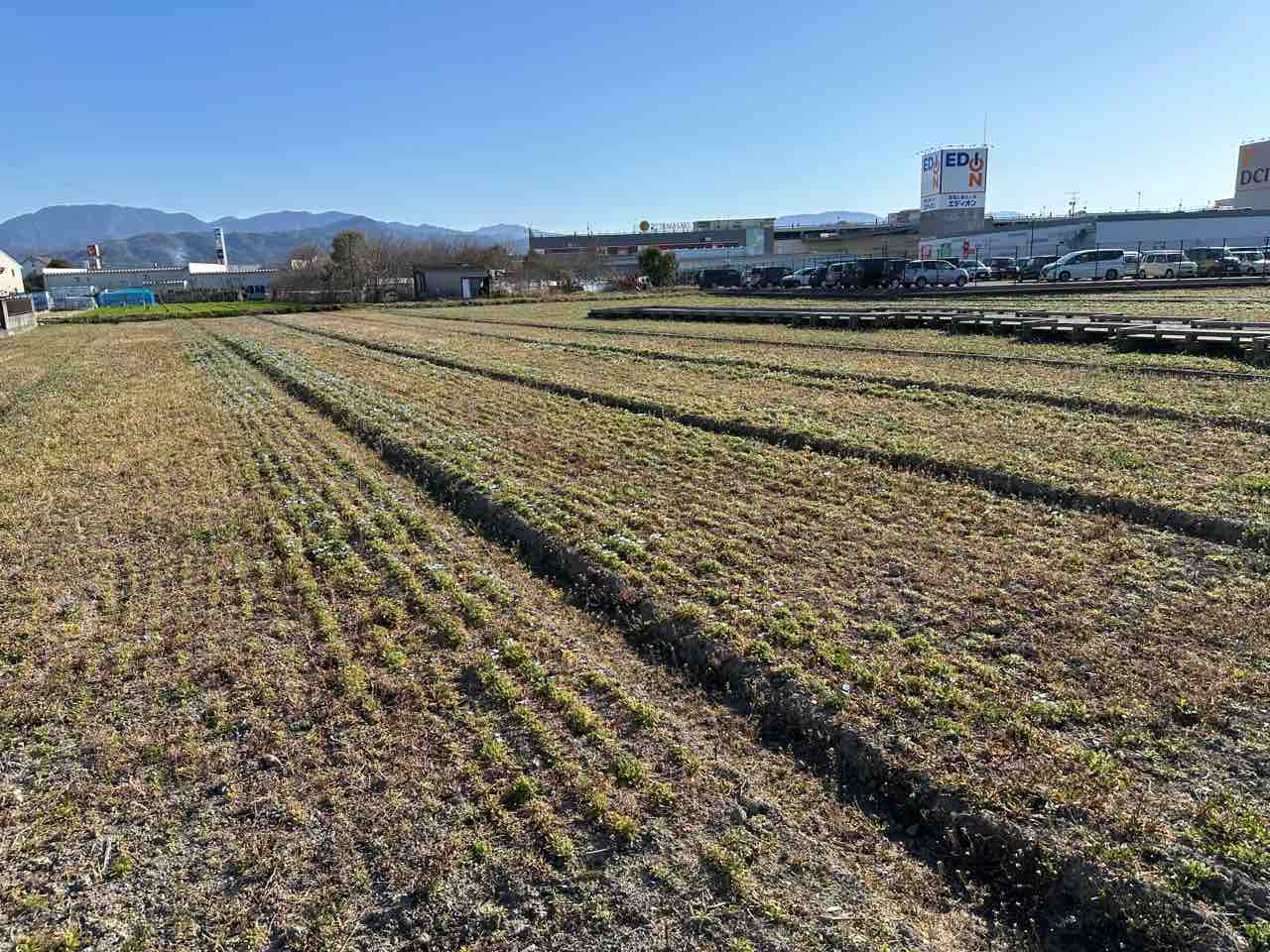 愛媛県伊予郡松前町西古泉、伊予鉄道「古泉駅」の目の前に広がる花畑「恋泉畑」。大型商業施設のエミフルMASAKI北側に隣接する、約3,000平方メートルの憩いの空間です。2018年秋に整備され、町のイメージアップと町民の交流の場として親しまれてきました。