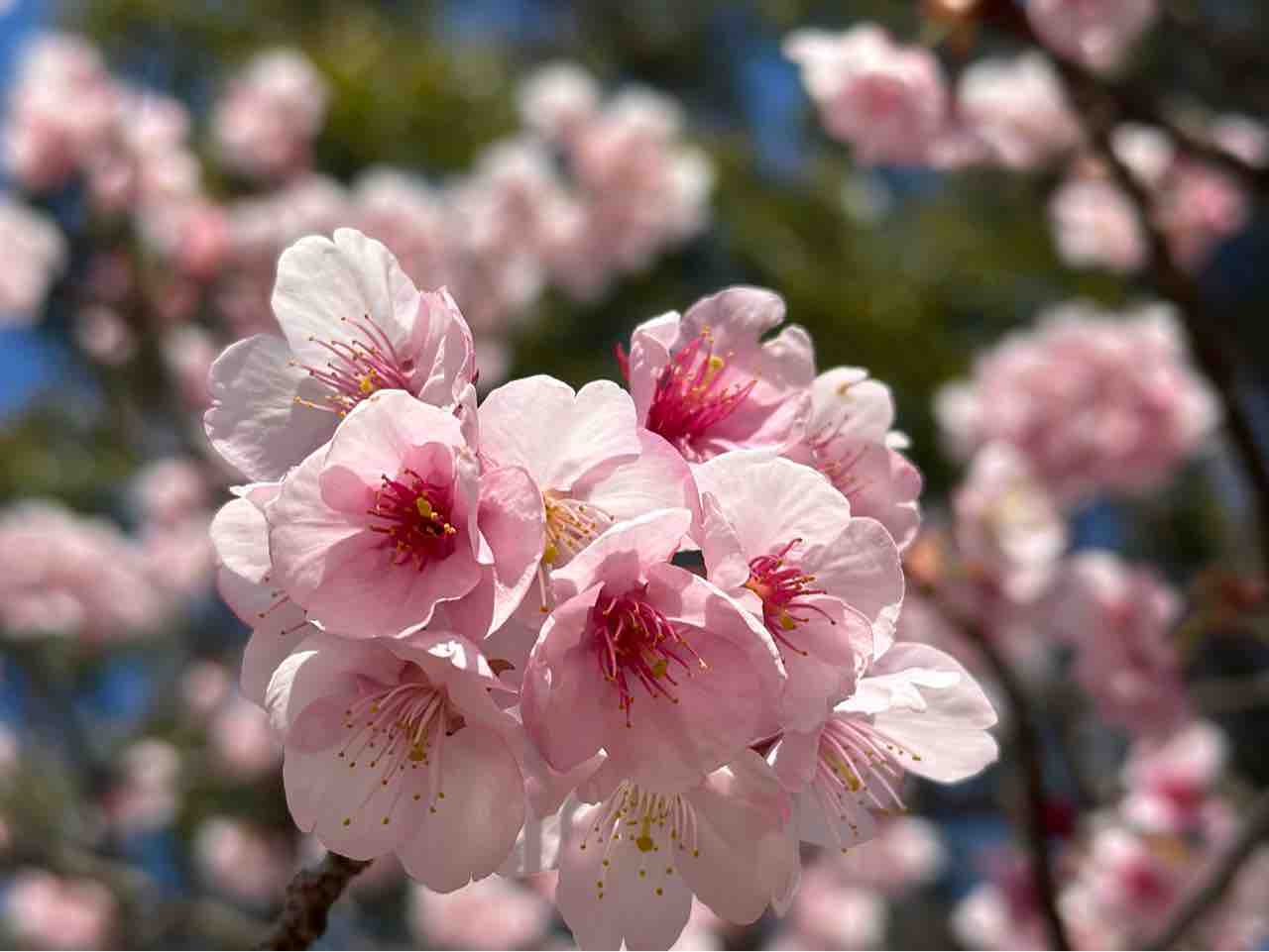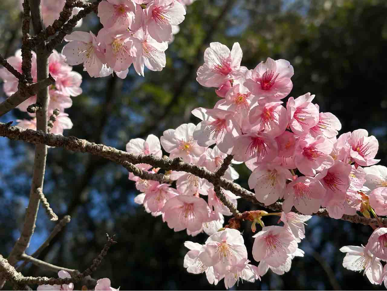 花はやや小ぶりで、五枚の花弁が控えめに開きます。つぼみの頃はやや濃い紅色ですが、咲き進むにつれて優しい薄紅色へと変わっていきます。その色の移ろいもまた魅力のひとつです。 寒さに比較的強く、花持ちが良いこともあり、各地の神社や公園で親しまれています。満開時の華やかさはもちろんですが、咲き始めの慎ましやかな姿もまた、春の訪れを静かに告げる存在として心に残ります。