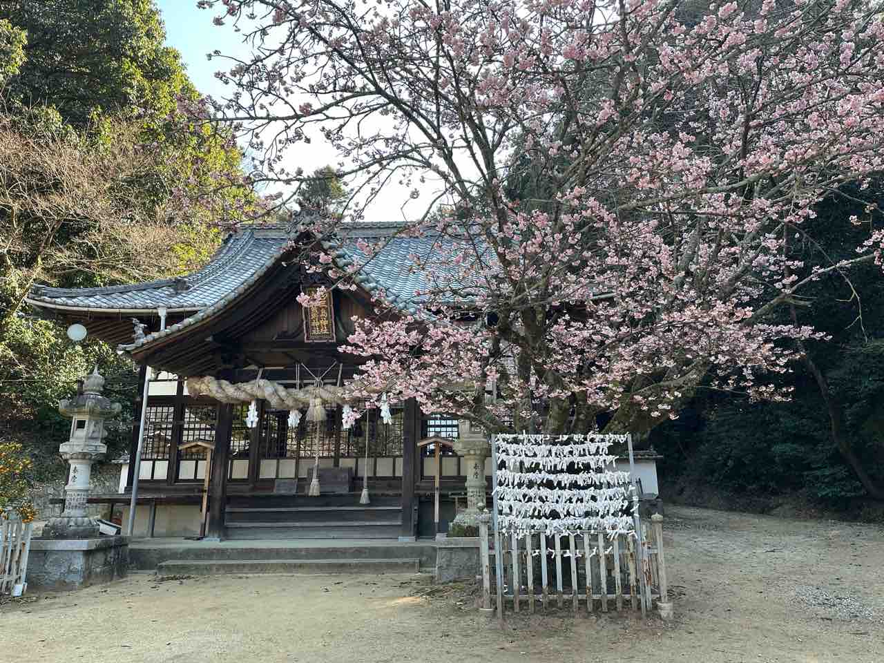 春の足音が、一歩一歩ゆっくりと近づいてきています。 松山市吉藤1丁目に鎮座する三島神社・吉原熊野神社では、境内に咲く「薄紅寒桜」が静かに花を開き始めています。 実際に足を運んでみると、境内はまだ人影も少なく、澄んだ空気の中にほんのりと春の色が差し込むような印象でした。