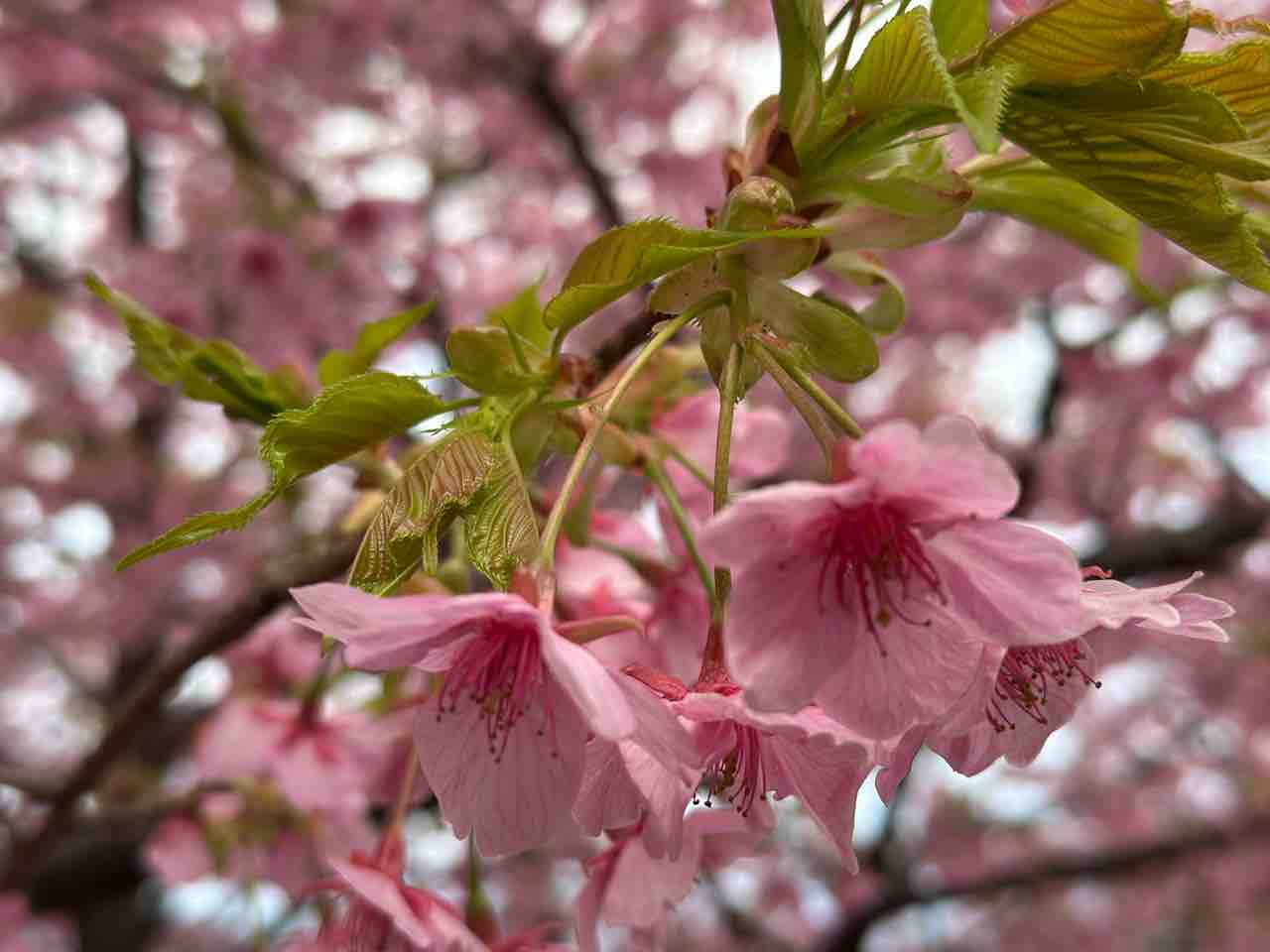 河津桜は、静岡県伊豆地方を発祥とする早咲きの桜で、一般的なソメイヨシノよりも約1か月早く開花します。濃い桃色の花びらが特徴で、開花期間が長く、ゆっくりと春の変化を楽しめる桜として知られています。