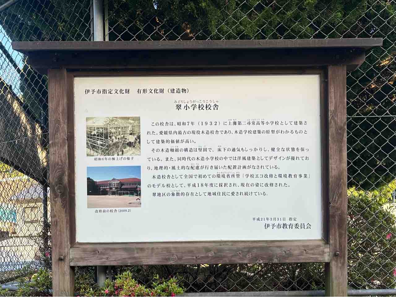 愛媛県内現役最古の木造校舎1932年建設の翠小学校。