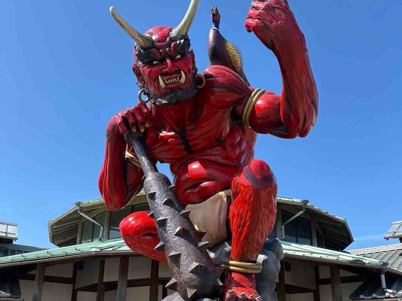 建物の中央には、真っ赤な鬼の巨大な像が鎮座しており、迫力満点。この鬼の像は、高さ5メートルにも及ぶモニュメントで、「鬼王丸(おにおうまる)」と名付けられています。鬼北町の「鬼の町づくり」の第一歩として制作されたもので、町のシンボルとして訪れる人々を迎えています。その堂々たる姿は、一目見ただけでインパクトがあり、鬼北町ならではの魅力を印象づける存在です。