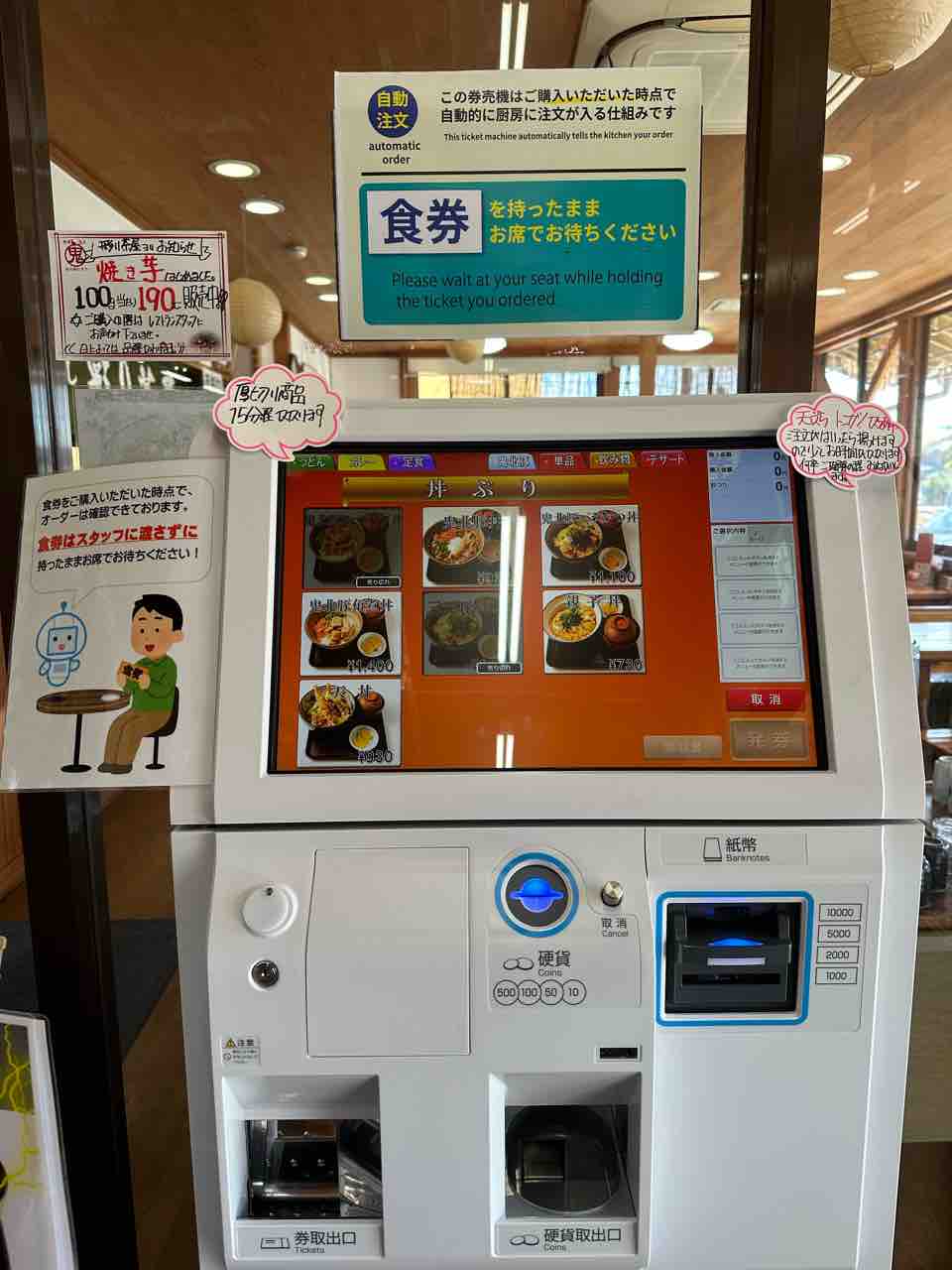 オーダーは券売機で食券を購入するスタイル。今回は、鬼北町産のブランド豚「旨福・鬼ポーク」を使用した「鬼北豚丼」をオーダーしました。