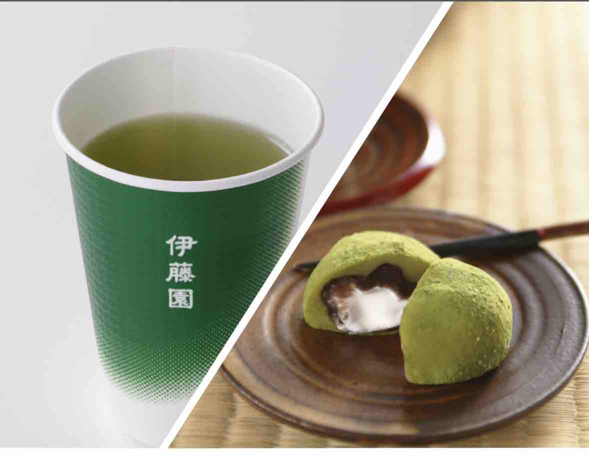 愛媛県新宮産の「かぶせ抹茶」を用いた人気の“霧の森大福”と伊藤園のお茶がセットになった贅沢な内容です。