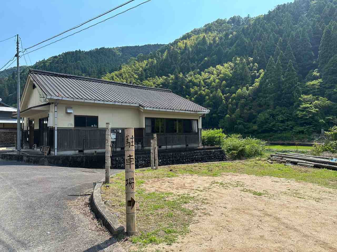トイレは正面に見える「川の郷町公民館」が利用できます。