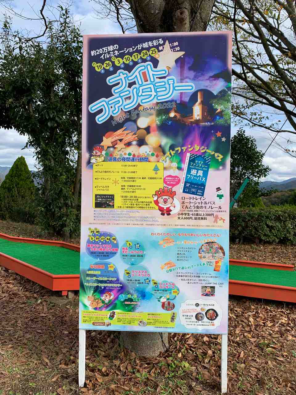 「えひめこどもの城」では、「ナイトファンタジー」が開催されていました。約20万球のイルミネーションが城を彩ります。