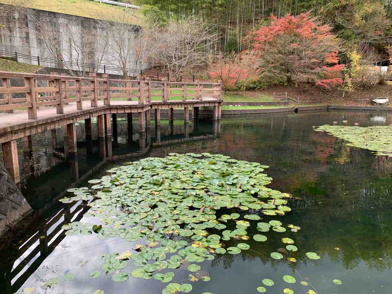 愛媛県砥部町にある「通谷池」では「すっかりもみじが色付いていますよ」と情報がありましたのでこの目で見て紹介したいと思います。