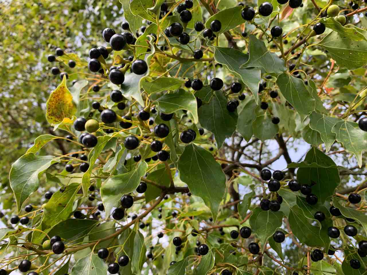 道端の木。クスノキの美のようです。こんなに沢山実って、食べれたら良いのになあ。