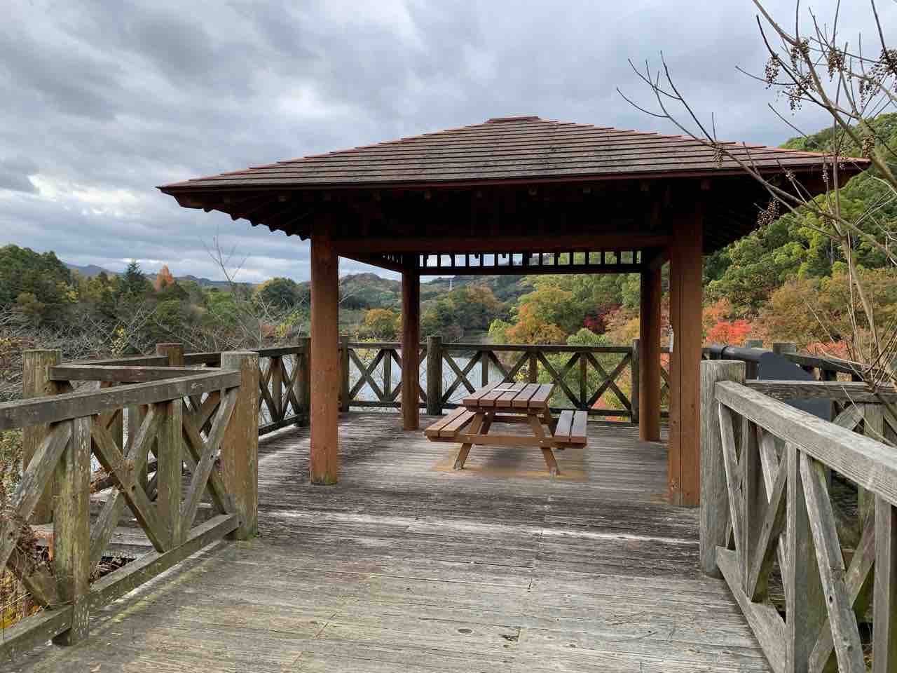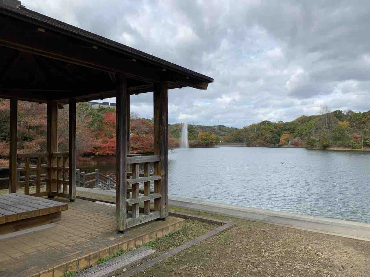 少し歩くと池を眺められる「東屋」があります。ちょっと休憩。